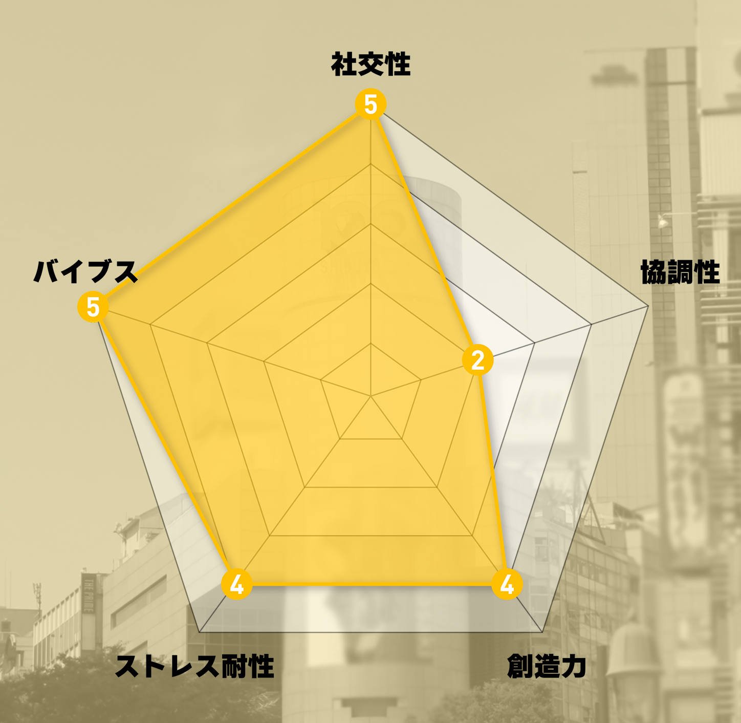 新しいもの好きな自由人。ジャンルを問わず音楽に詳しく、ライブ巡りが趣味。祭りやイベントごとも大好きで率先して盛り上げ役を買うことが多いが、いつも詰めが甘く周りに突っ込まれている。何かと思いつきで催し物を開催するものの後片付けは苦手。整理整頓好きな恵比寿駅・饗庭に小言を言われるのがお決まりだが、なぜか憎まれない弟的な立ち位置になっている。