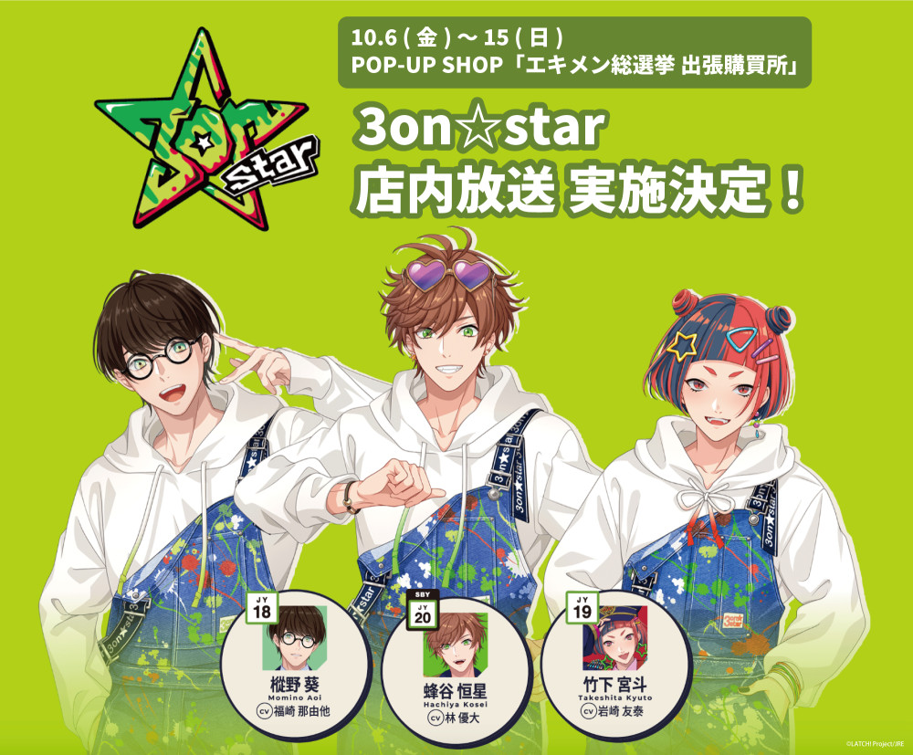 POP-UP SHOP「エキメン総選挙 出張購買所」での <3on☆star> 店内放送決定!